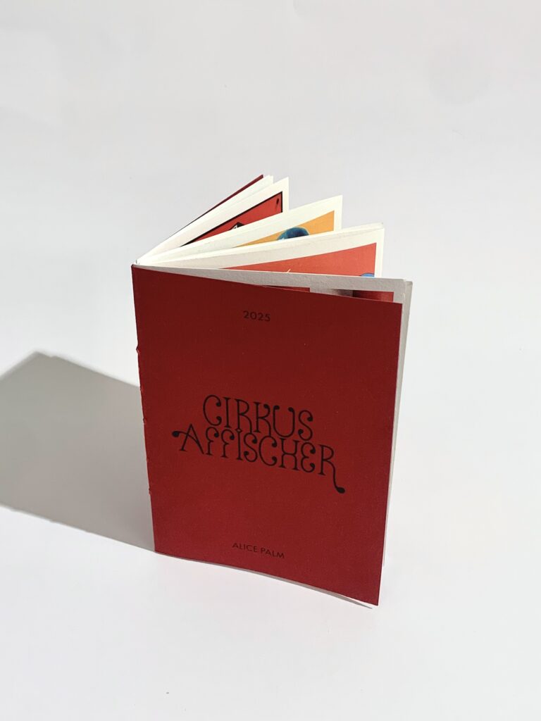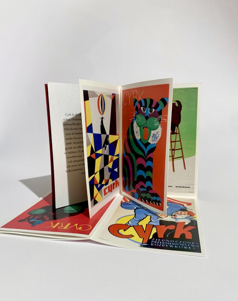 Egendesignat rubrikstypsnitt inspirerat av cirkusestetik. Cirkustältbilden är skapad i Adobe Illustrator. Affischerna (hittatades på nätet) är dubbelsidigt printade på A3 papper som sedan skurits och vikts i en byxvikning. Byxvikningen gör att man kan väckla ut boken till A3 format. Boken är bunden med röd tråd.
