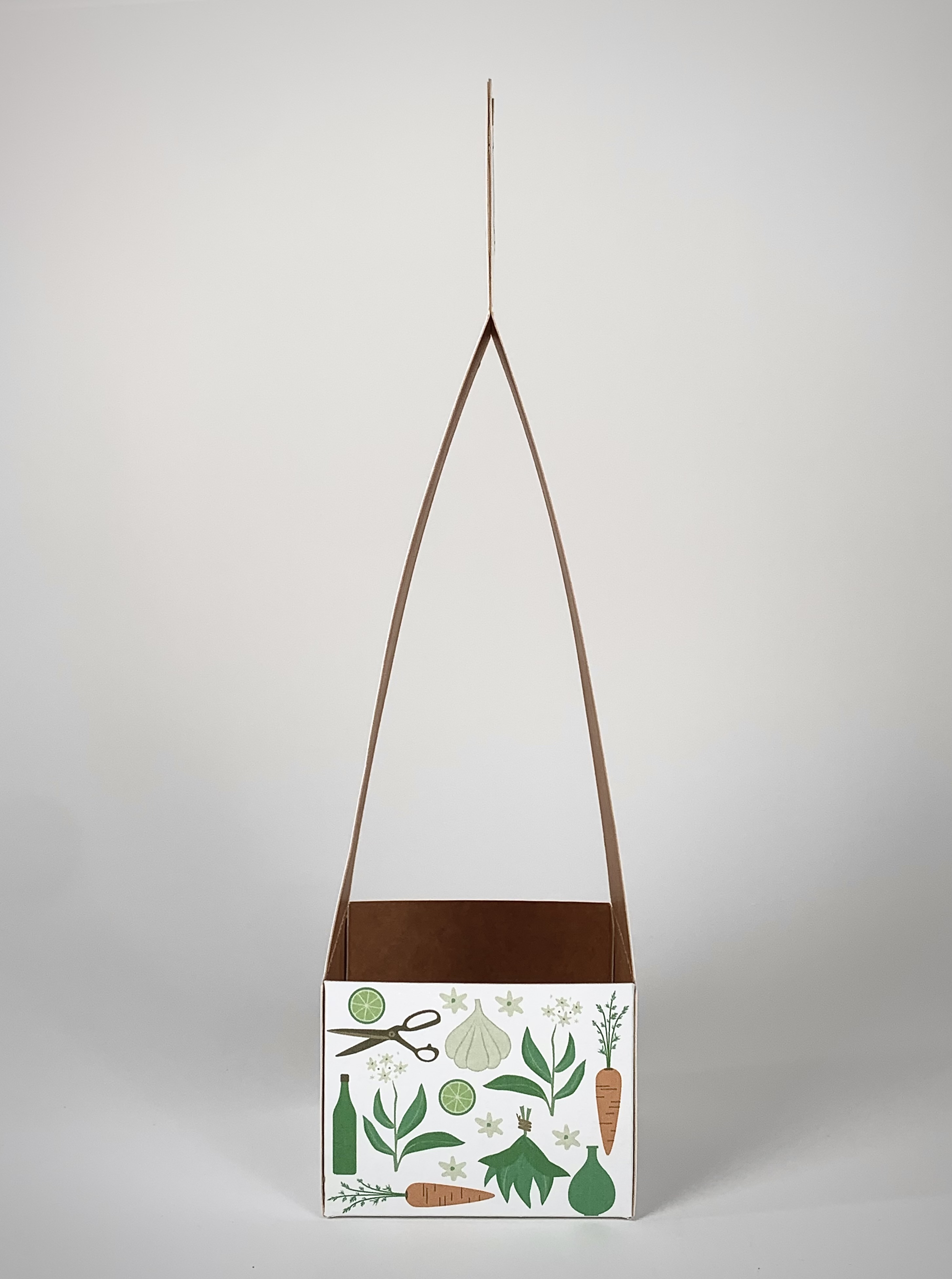 Problemet med många befintliga örtförpackningar är att de varken är estetiskt tilltalande att ställa fram på matbordet eller tillräckligt robusta för att inte bli mosade i matkassen. Mitt förslag av förpackning gör det enklare att bära hem örten och, efter att perforeringen är riven, även vara prydlig på matbordet.